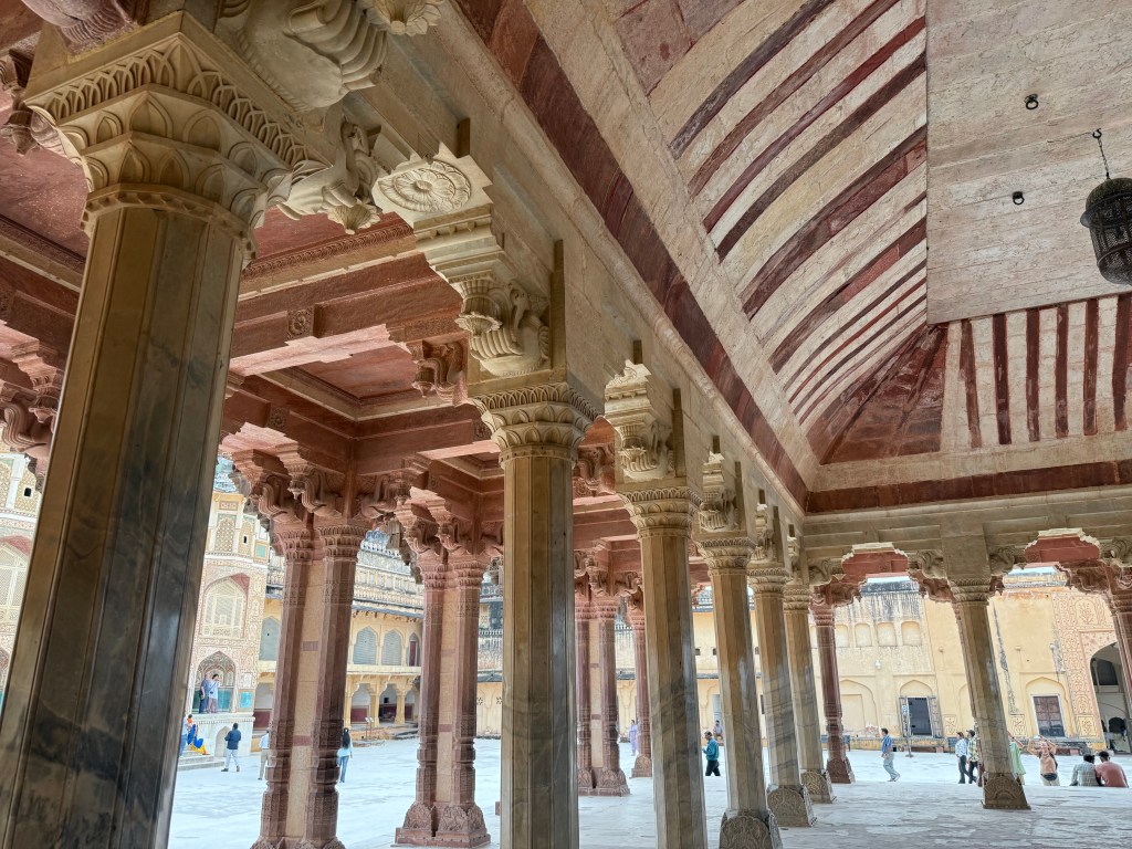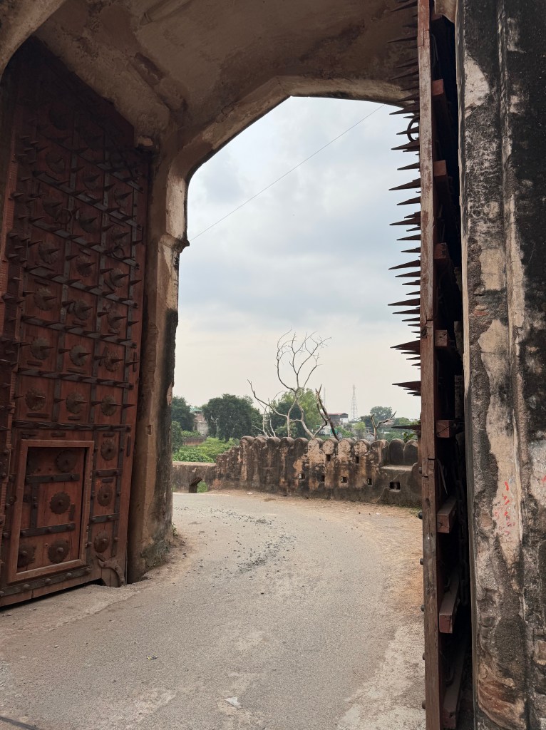 Raj Mahal – the bridge was a defensive measure…to enter the castle one must turn 90 degrees to the right. this was done to prevent Elephants from getting a head of steam to ram the gates. There were also nasty metal spikes protruding from the doors.