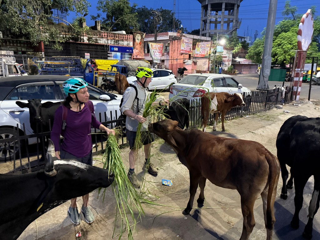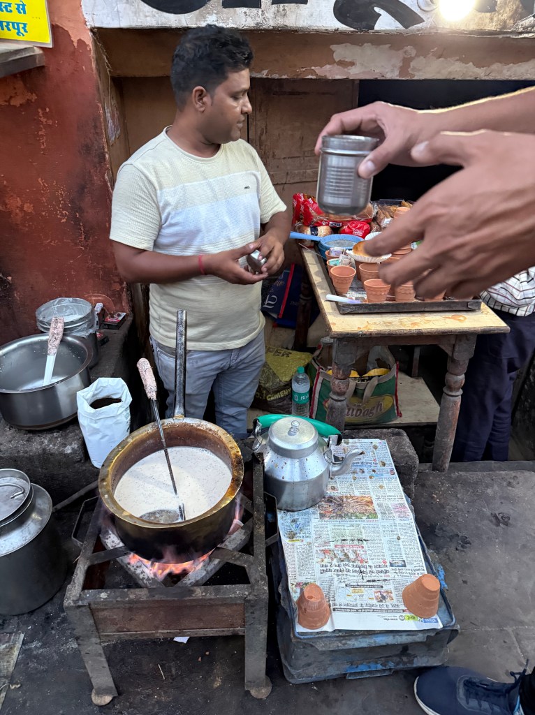 One of the first things we did was feed the cows… Apparently a tradition in the city of Jaipur while everybody shouted, greetings to us as we were driving along on our bike bikes. From there, we stopped at a place for marsala tea…